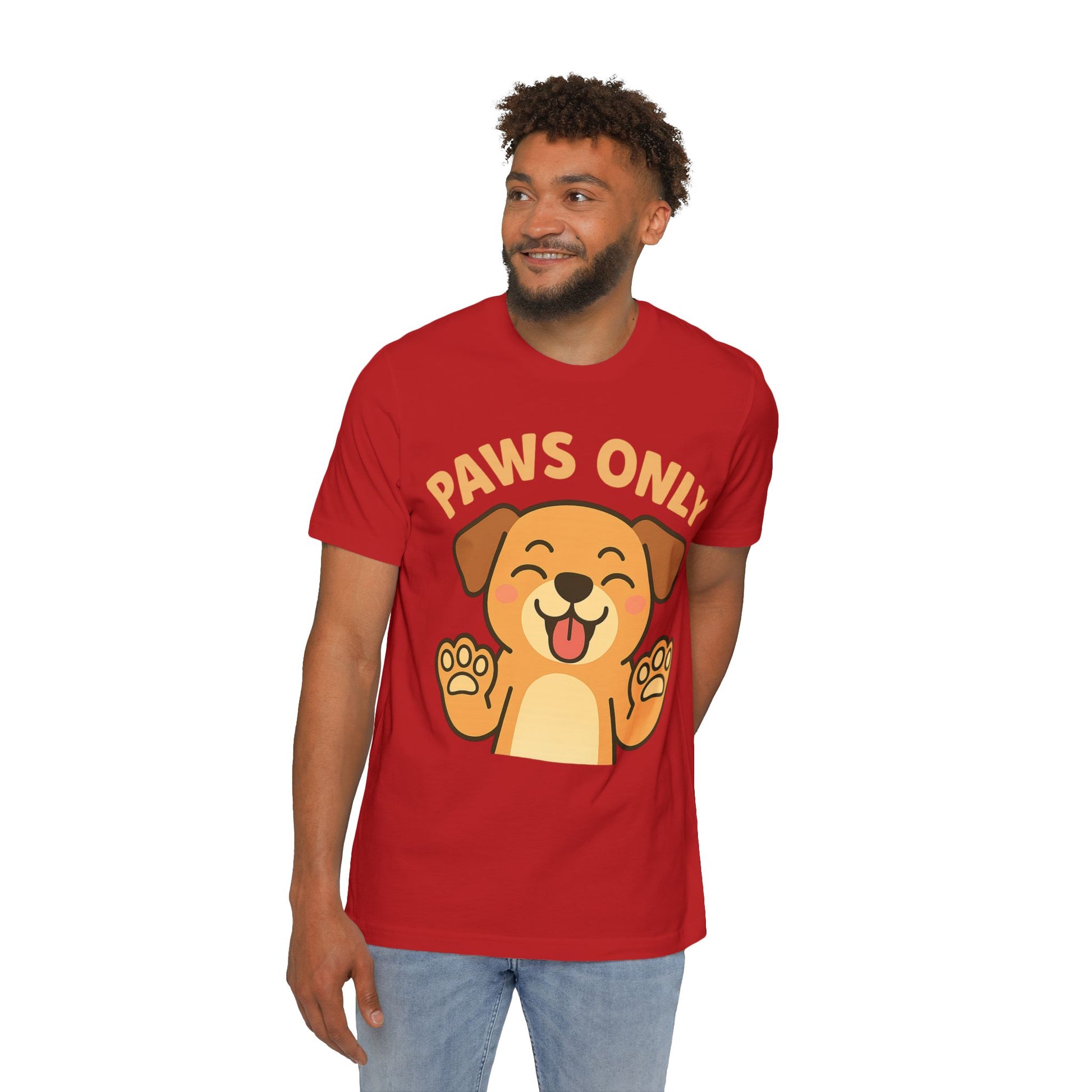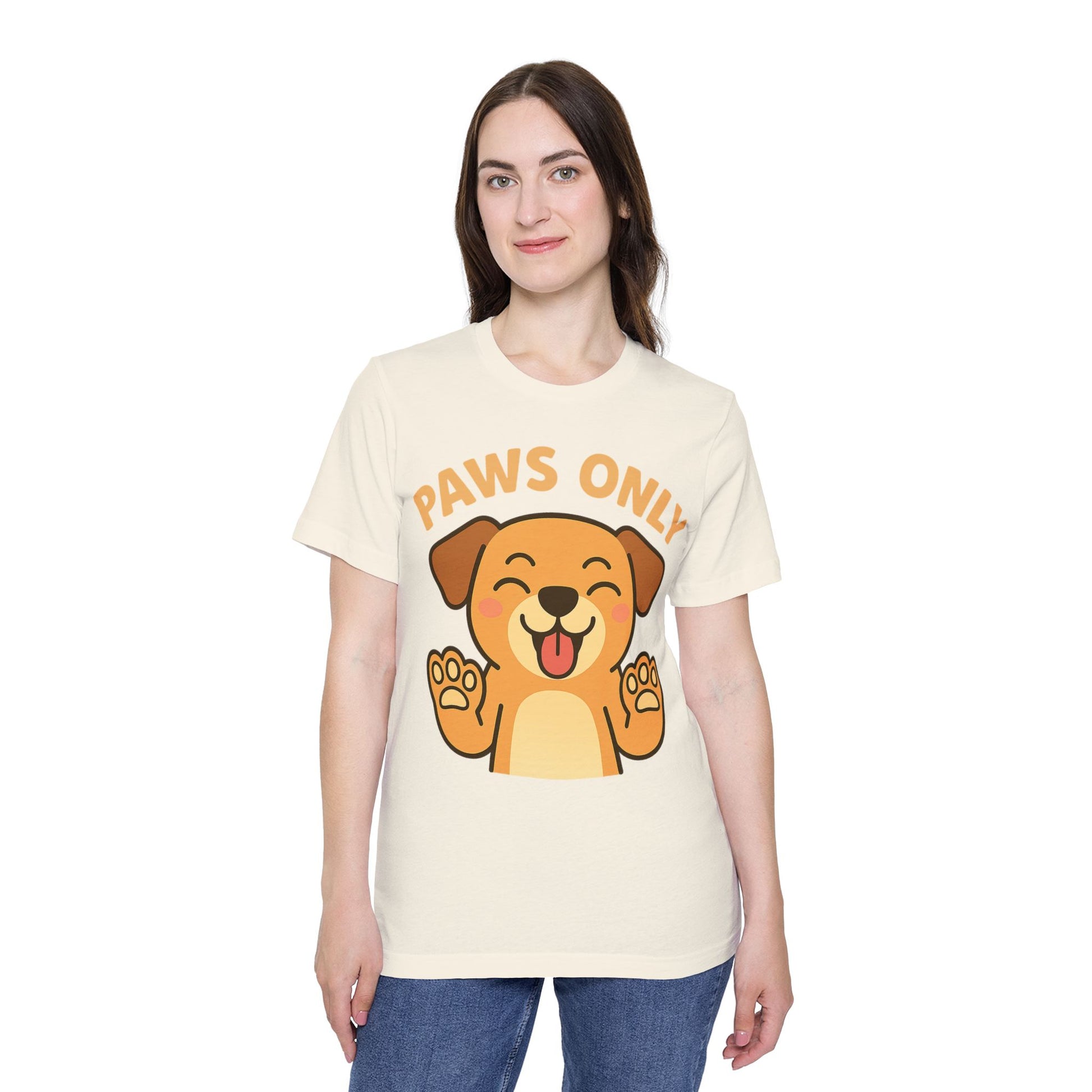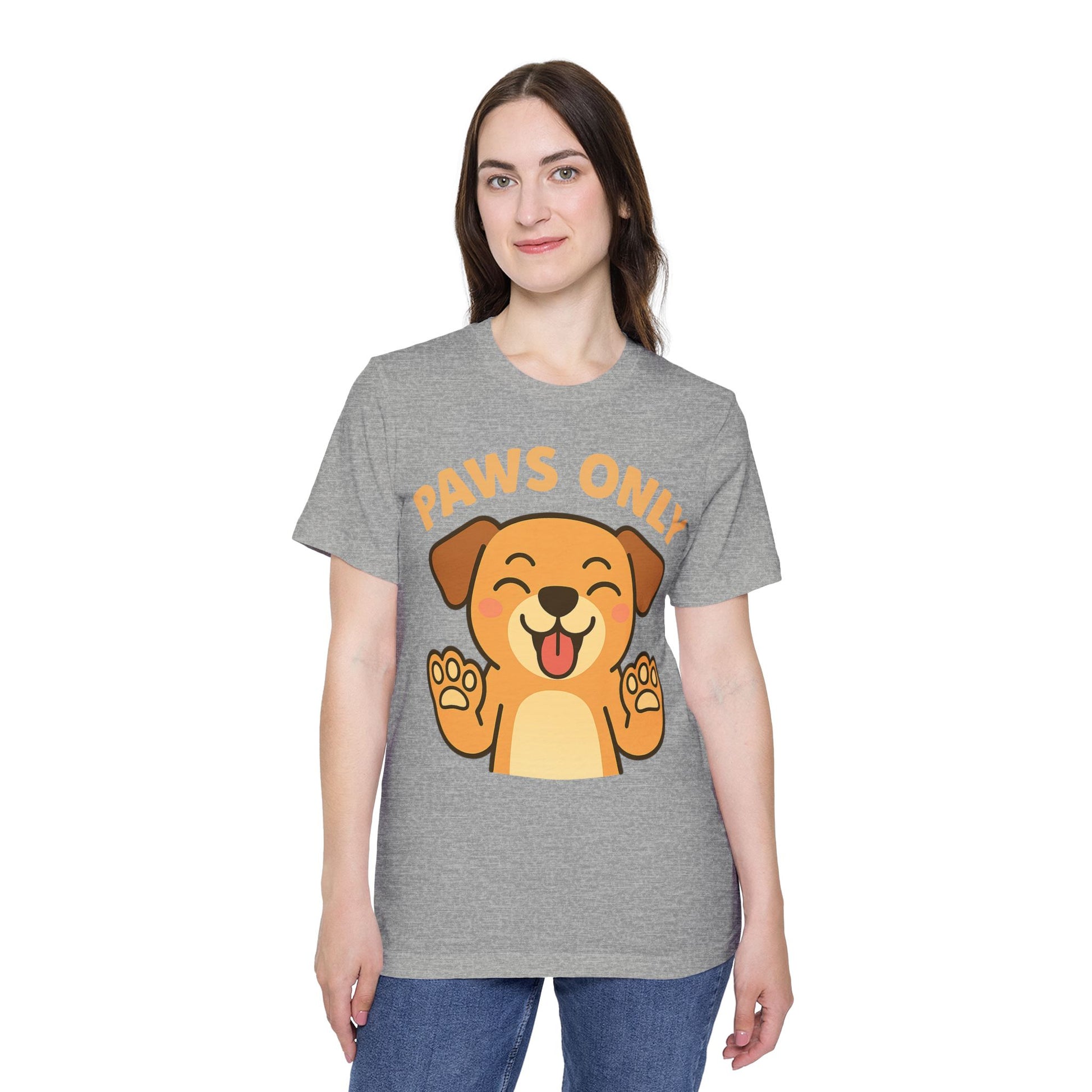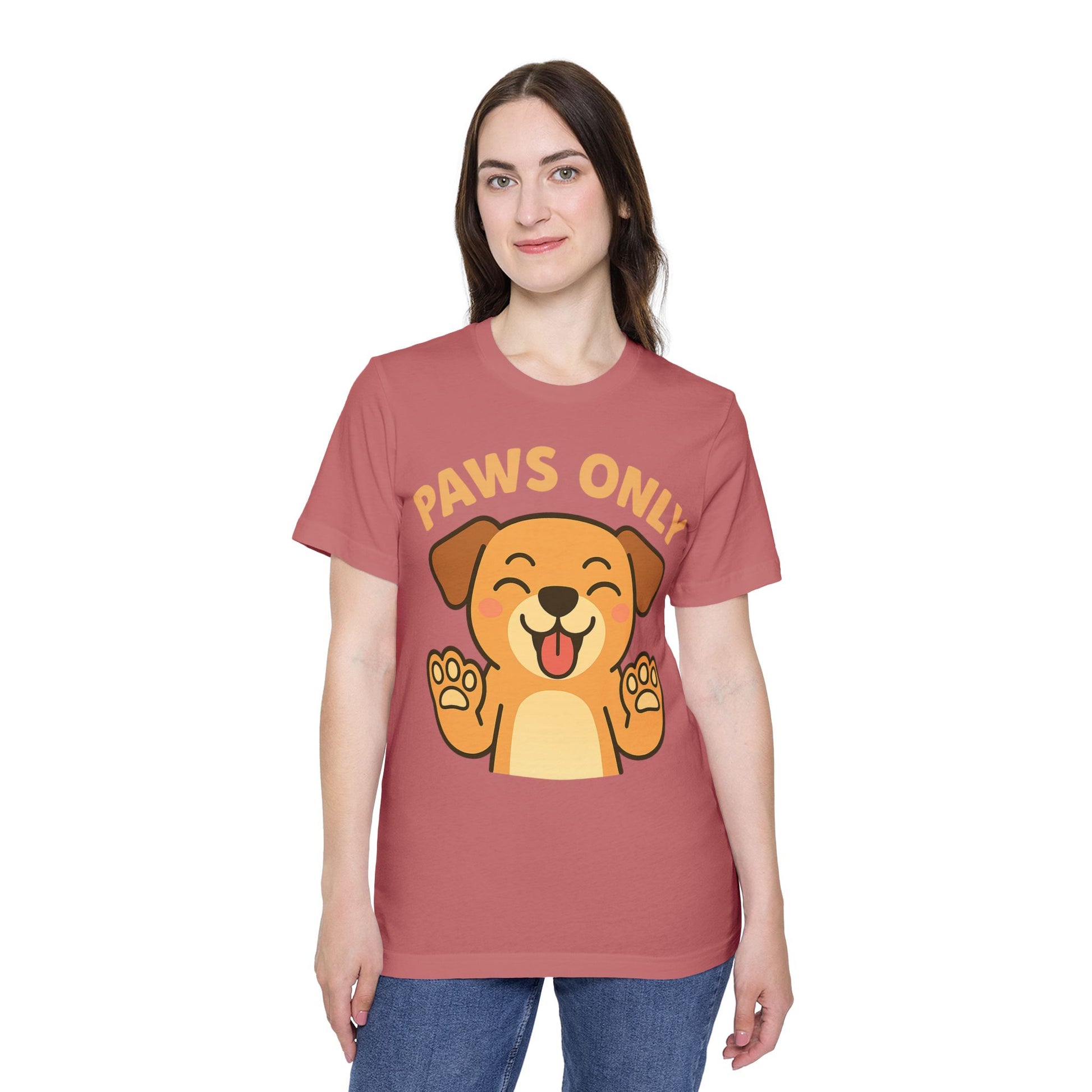 Show off your playful side with this adorable “Paws Only” dog graphic tee! Featuring a cheerful cartoon pup, this ultra-soft unisex t-shirt is perfect for dog lovers who enjoy fun, lighthearted fashion.vers.
